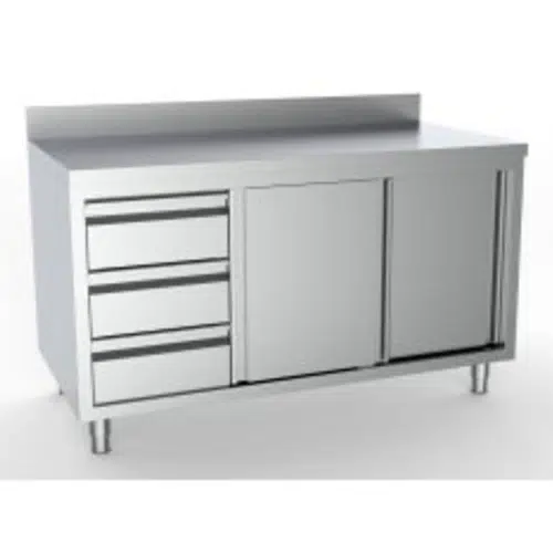 700 arbeitstisch schiebetüren schubladen links mit aufkantung 2000 | Combisteel 7333.0270